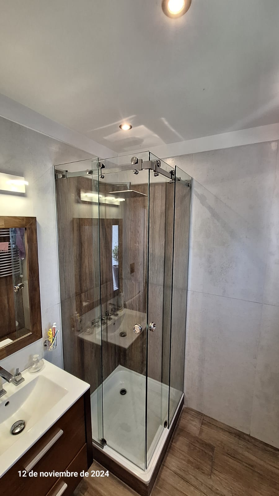 - Tipo de instalación sobre ducha o muro y requiere fijación sobre las paredes laterales.