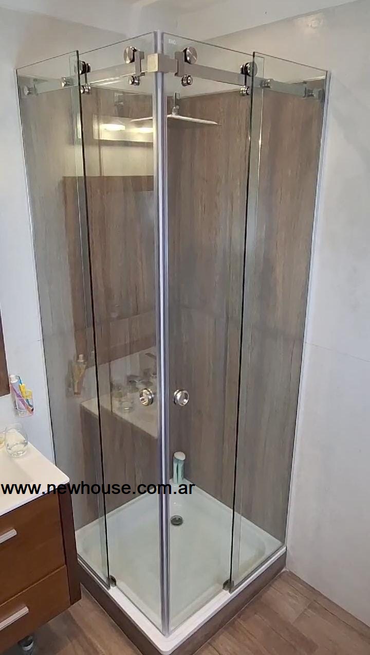 Corresponde a: 4 cristales templados incoloros de 8 mm espesor correspondientes a 1 box esquinero de 100x100x200cm con un kit de perfiles en acero inoxidable para su correcta instalación.