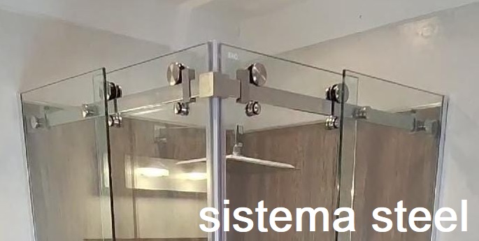 Mampara de baño Esquinera Acero Inox – Tipo Box Fontal Esquinero 4h (2 paños fijos + 2 puertas corredizas centrales)