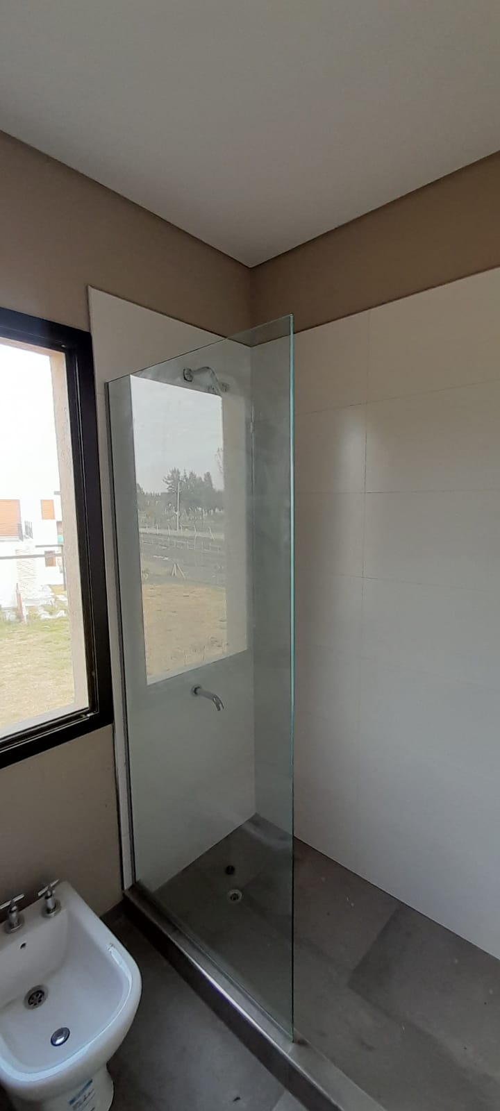 - La mampara esta fabricada en cristal Incoloro templado de 8 mm espesor con perfileria en aluminio brillante